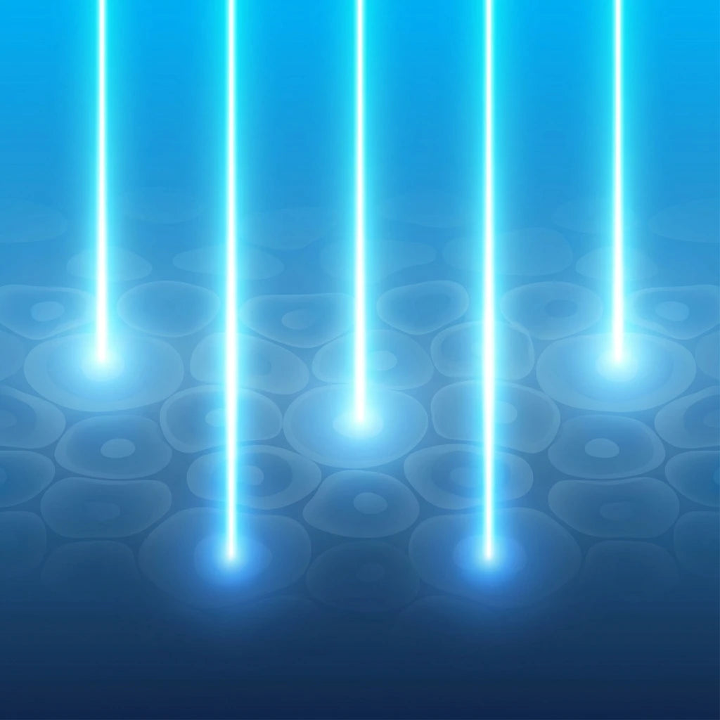 Delivers targeted 630nm wavelength red light to the under-eye area. This specific wavelength penetrates the skin surface to reach the dermal layer where it interacts with skin cells. The ergonomic glasses design ensures consistent light delivery directly to the treatment area.